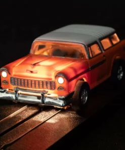 This is the Auto World 1955 Chevrolet Nomad (Orange) Xtraction Flamethrowers R33 HO Slot Car.