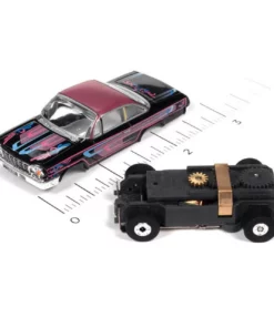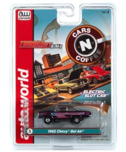 This is the Auto World 1962 Chevrolet Bel Air Black/Purple Thunderjet HO Slot Car from the Cars-N-Coffee Thunderjet Release 31 series.