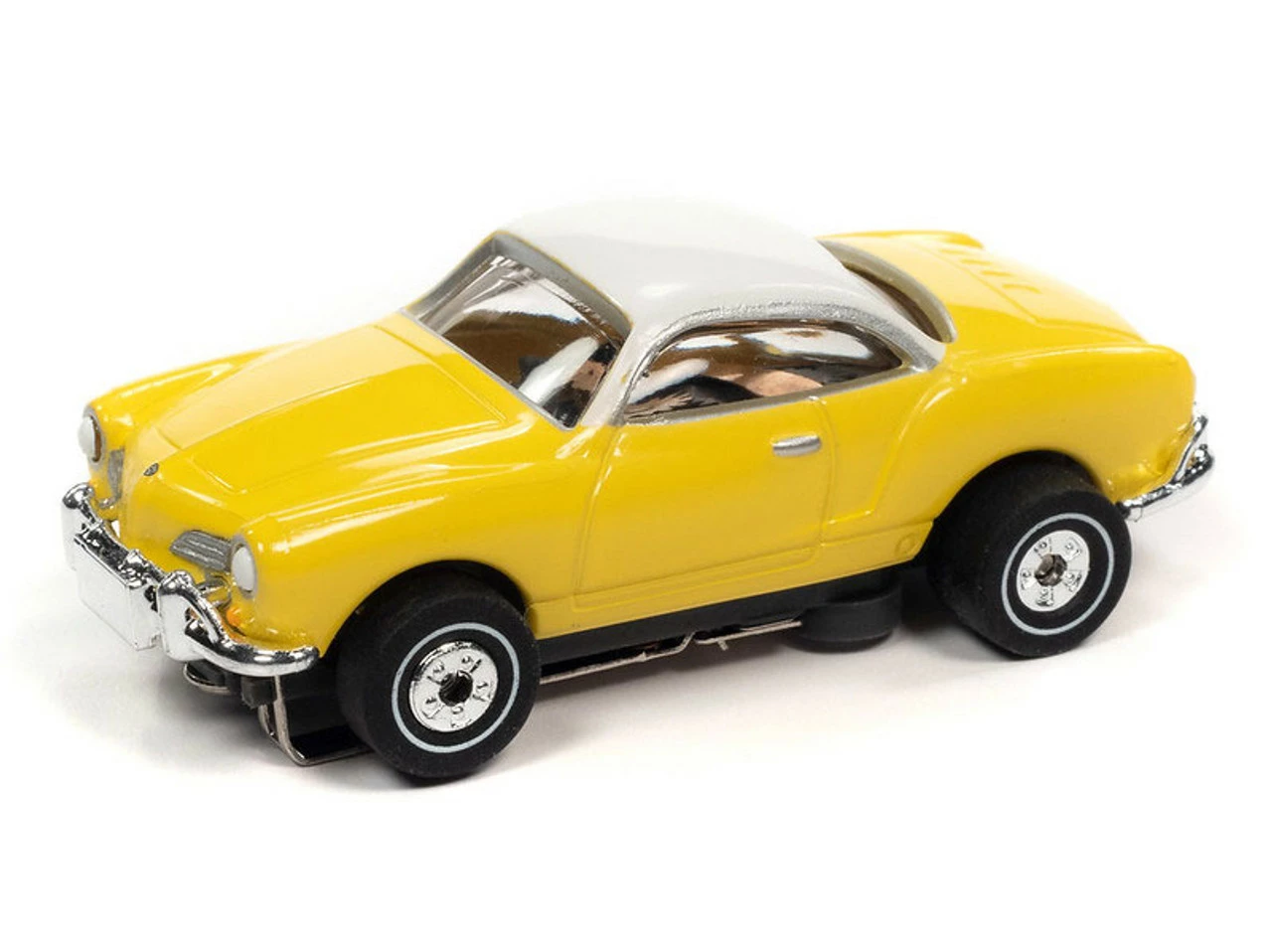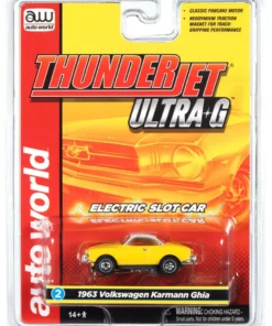 This is the Auto World 1963 Volkswagen Karmann Ghia (Yellow) Thunderjet HO Slot Car