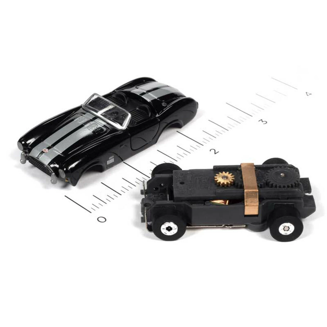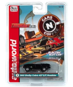This is the Auto World 1965 Shelby Cobra 427 S/C Roadster Black Thunderjet HO Slot Car from the Cars-N-Coffee Thunderjet Release 31 series.