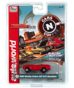 This is the Auto World 1965 Shelby Cobra 427 S/C Roadster Red Thunderjet HO Slot Car from the Cars-N-Coffee Thunderjet Release 31 series.