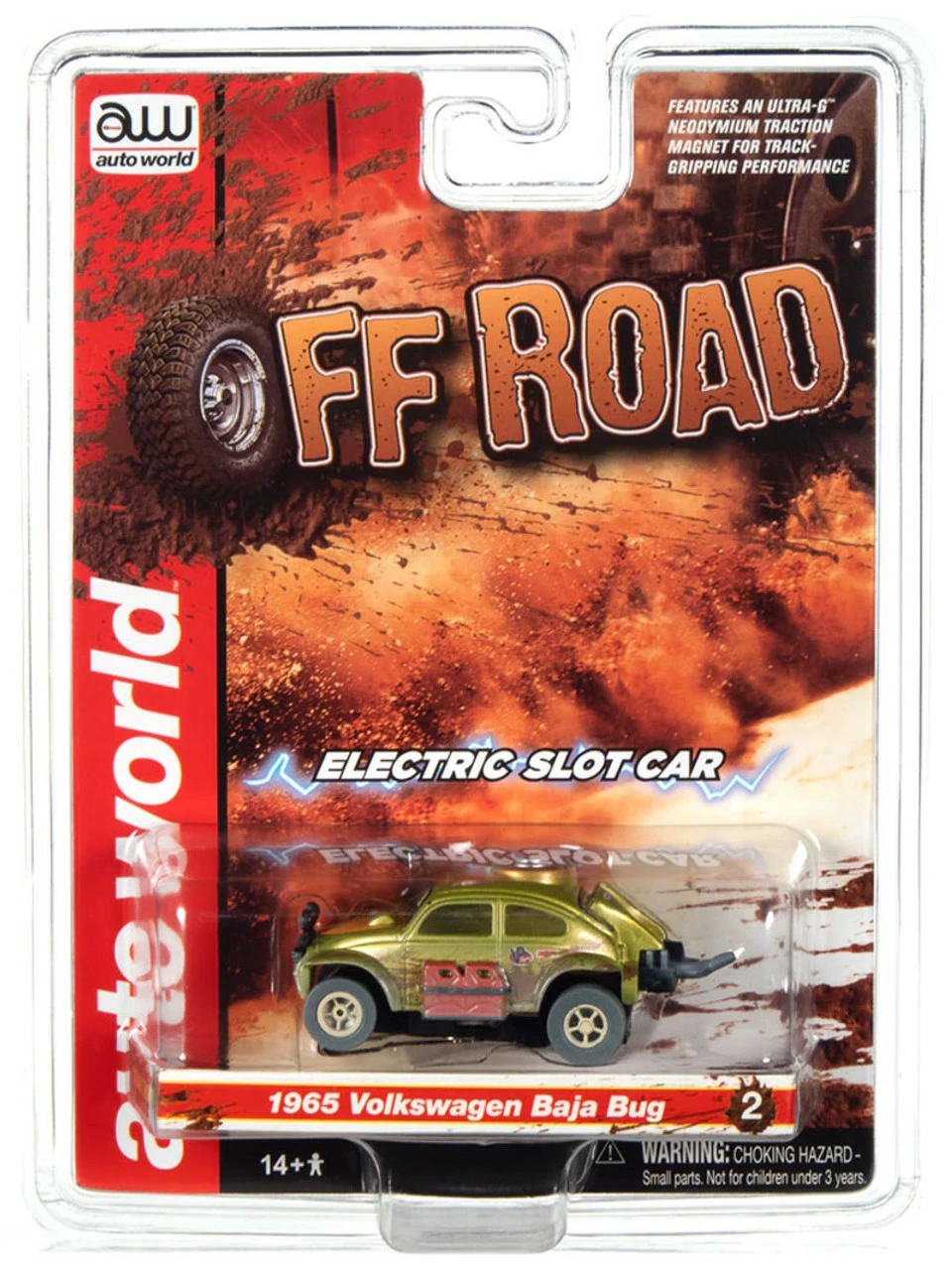 The X-Traction chassis is a modified version of the classic pancake design used in Auto World’s ThunderJet Chassis. Increased weight and larger rear wheels provide better performance and superior handling. Underneath, and Ultra-G neodymium traction magnet adds even more track-gripping handling through the tightest curves for maximum racing excitement!