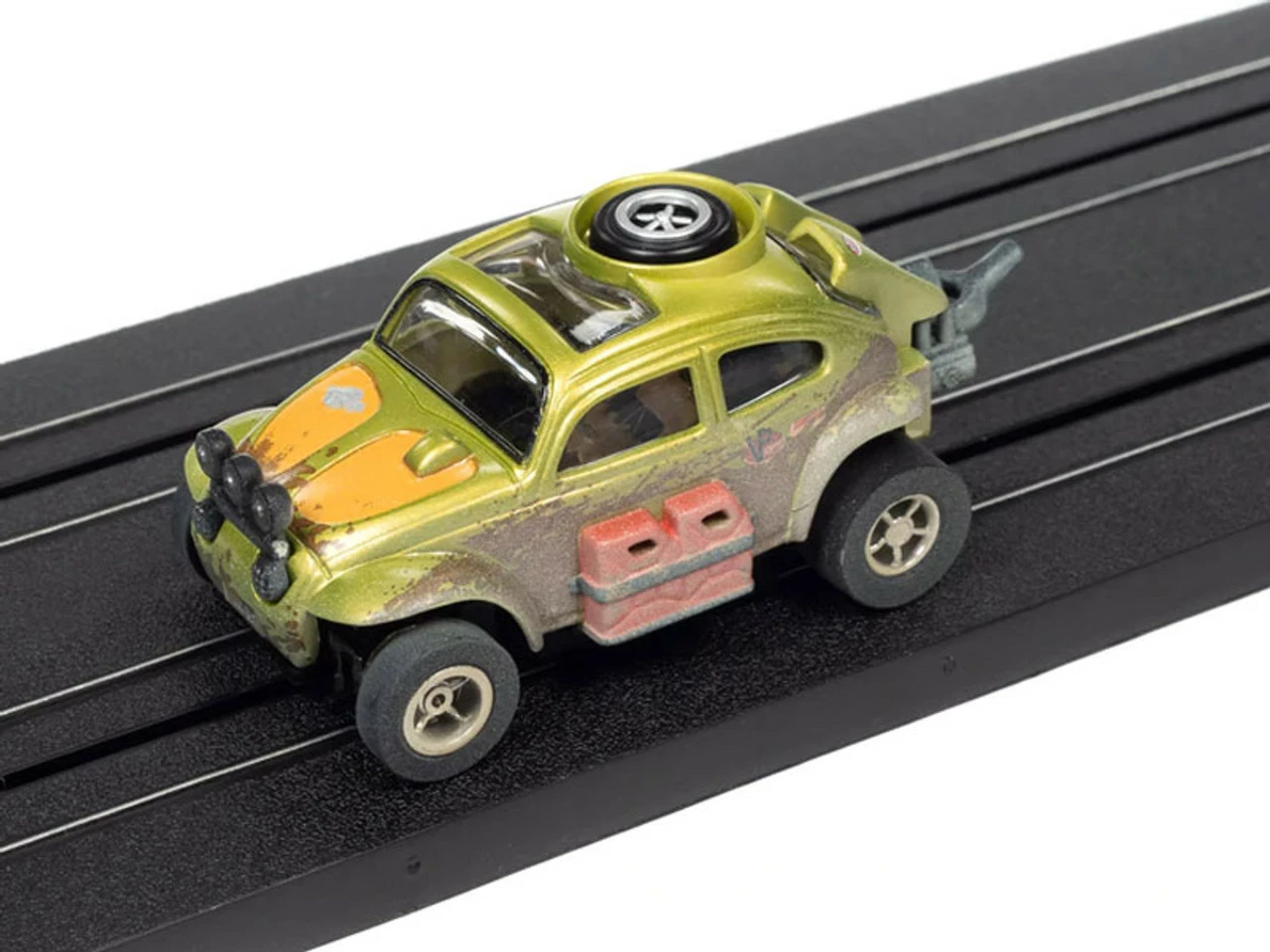 This is the Auto World 1965 Volkswagen Baja Bug (Green) X-Traction R1 HO Slot Car