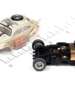 The X-Traction chassis is a modified version of the classic pancake design used in Auto World’s ThunderJet Chassis. Increased weight and larger rear wheels provide better performance and superior handling. Underneath, and Ultra-G neodymium traction magnet adds even more track-gripping handling through the tightest curves for maximum racing excitement!