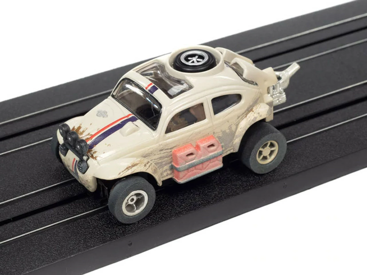This is the Auto World 1965 Volkswagen Baja Bug (White) X-Traction R1 HO Slot Car