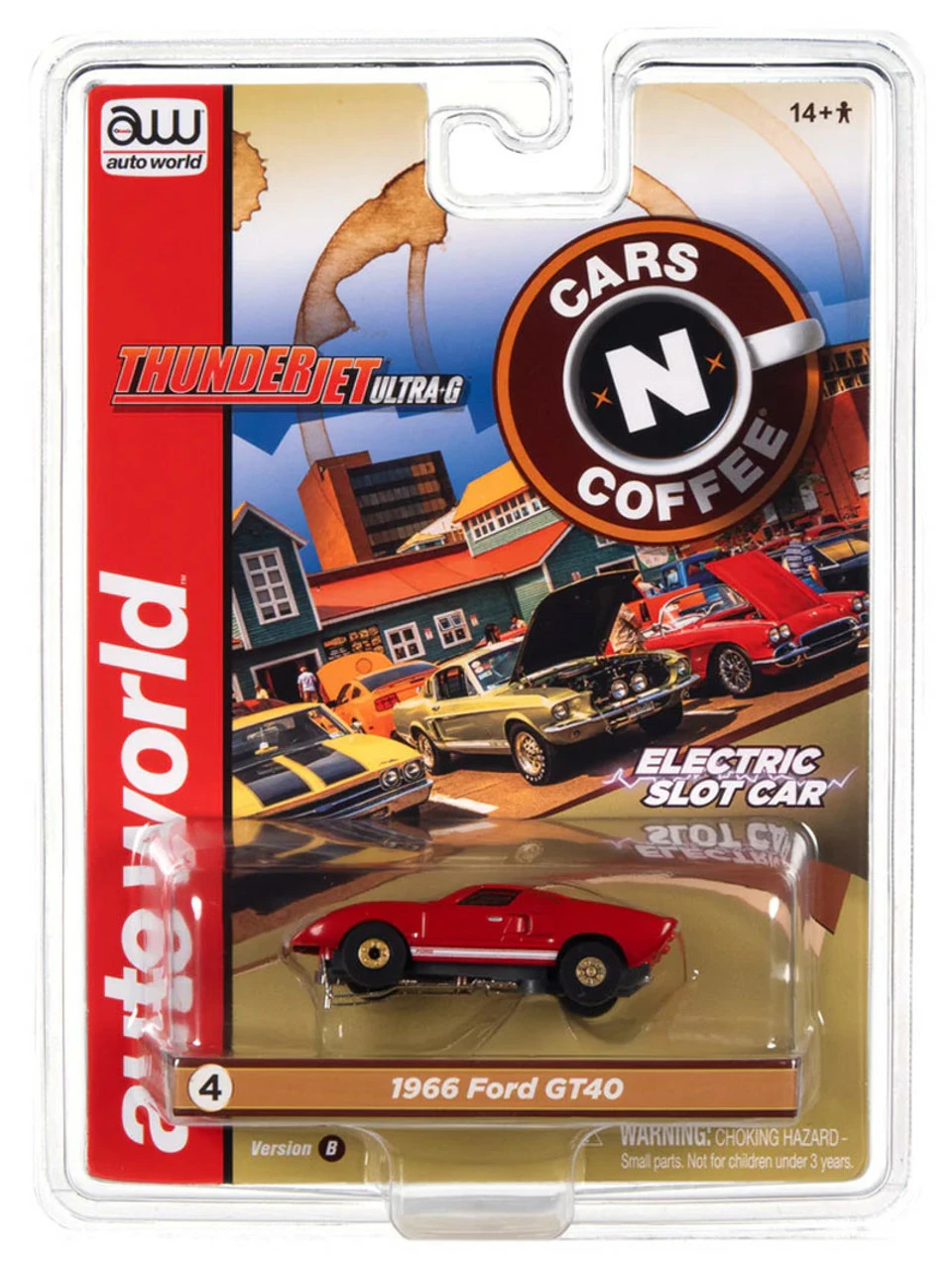 This is the Auto World 1966 Ford GT40 (Red) Cars N Coffee Thunderjet HO Slot Car.