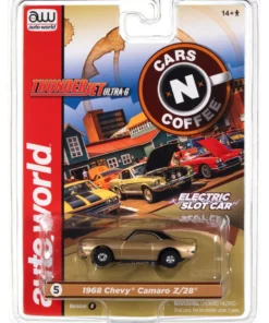 This is the Auto World 1968 Chevrolet Camaro Z/28 (Gold) Cars N Coffee Thunderjet HO Slot Car.