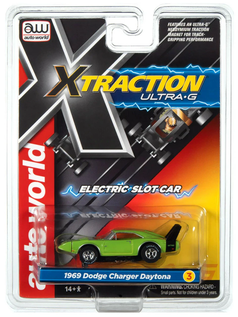 This is the Auto World 1969 Dodge Charger Daytona (Green) X-Traction R35 HO Slot Car