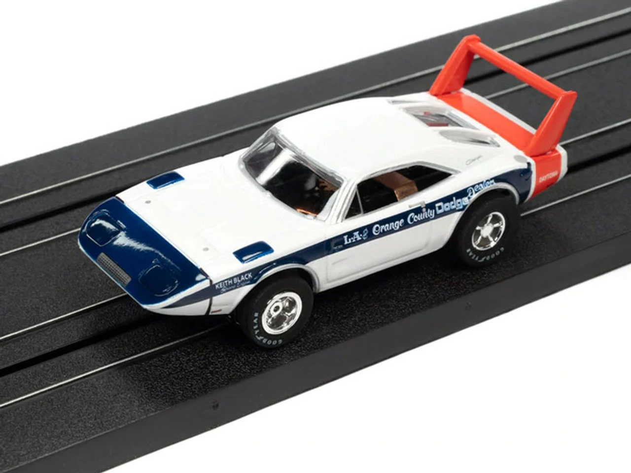 This is Auto World 1969 Dodge Charger Daytona (White) X-Traction R35 HO Slot Car