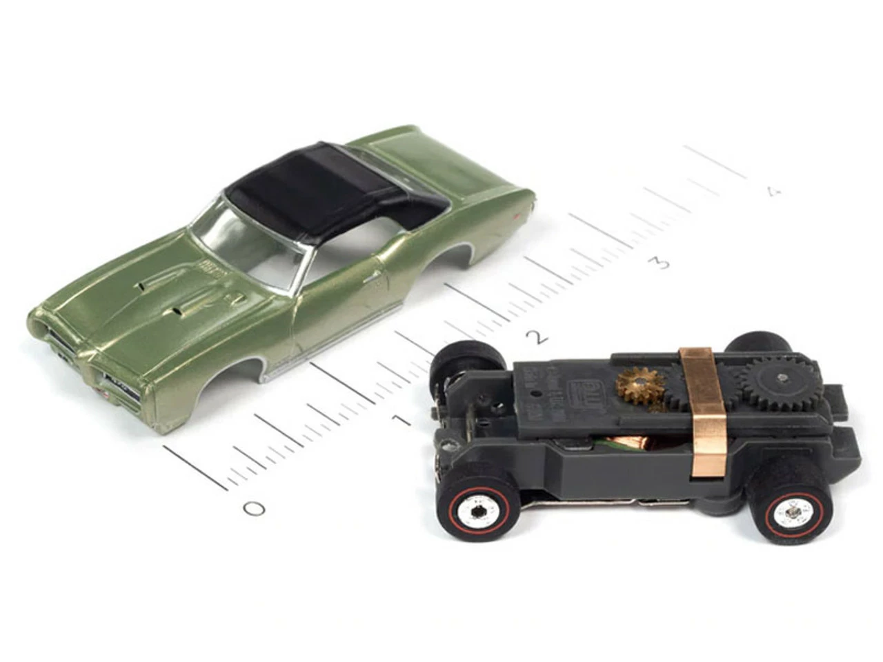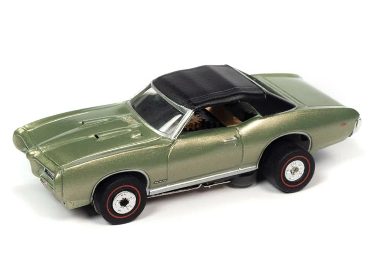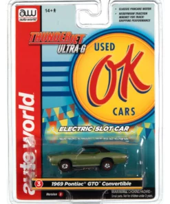 This is the OK USED CARS Auto World 1969 Pontiac GTO Convertible (Green) Thunderjet HO Slot Car