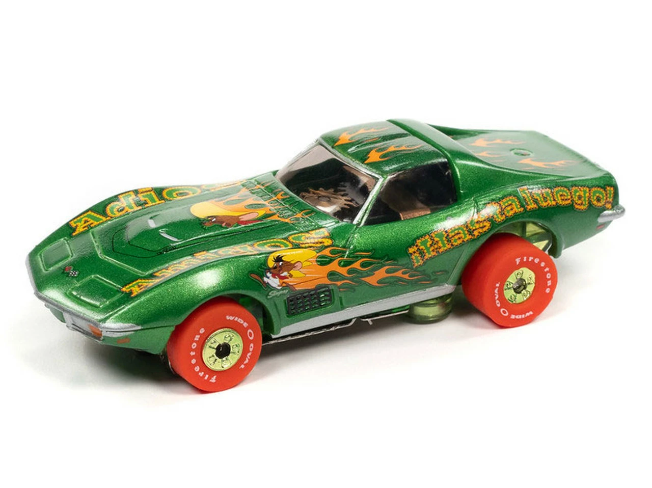 This is the Auto World 1970 Chevy Corvette Speedy Gonzales Thunderjet HO Slot Car
