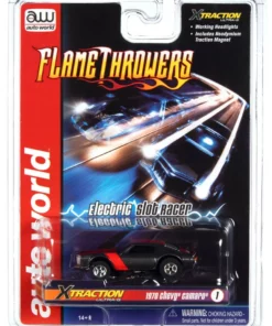 The X-Traction chassis is a modified version of the classic pancake design used in Auto World’s ThunderJet Chassis. Increased weight and larger rear wheels provide better performance and superior handling. Underneath, and Ultra-G neodymium traction magnet adds even more track-gripping handling through the tightest curves for maximum racing excitement!