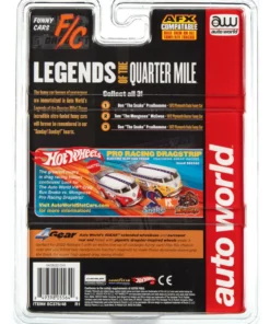 Auto World’s 4GEAR extended wheelbase and narrowed rear end fitted with gigantic dragster-inspired wheels make it perfect for Release 26 with an entire line-up of Legends of the Quarter Mile Funny Cars!