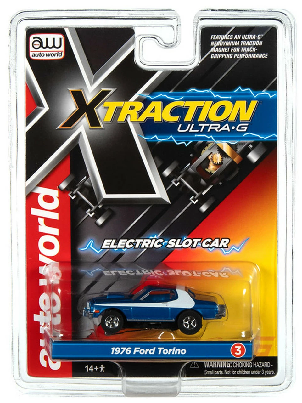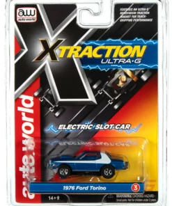 This is the Auto World 1976 Ford Torino (Blue) X-Traction R34 HO Slot Car