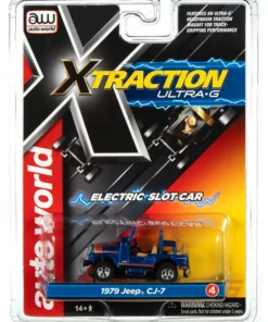 This is the Auto World 1979 Jeep CJ-7 (Blue) X-Traction R34 HO Slot Car