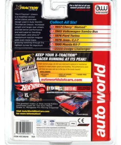 The X-Traction chassis is a modified version of the classic pancake design used in Auto World’s ThunderJet Chassis. Increased weight and larger rear wheels provide better performance and superior handling. Underneath, and Ultra-G neodymium traction magnet adds even more track-gripping handling through the tightest curves for maximum racing excitement!