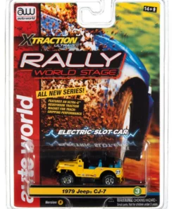 This is the Rally World Stage Auto World 1979 Jeep CJ-7 (Yellow) X-Traction HO Slot Car.