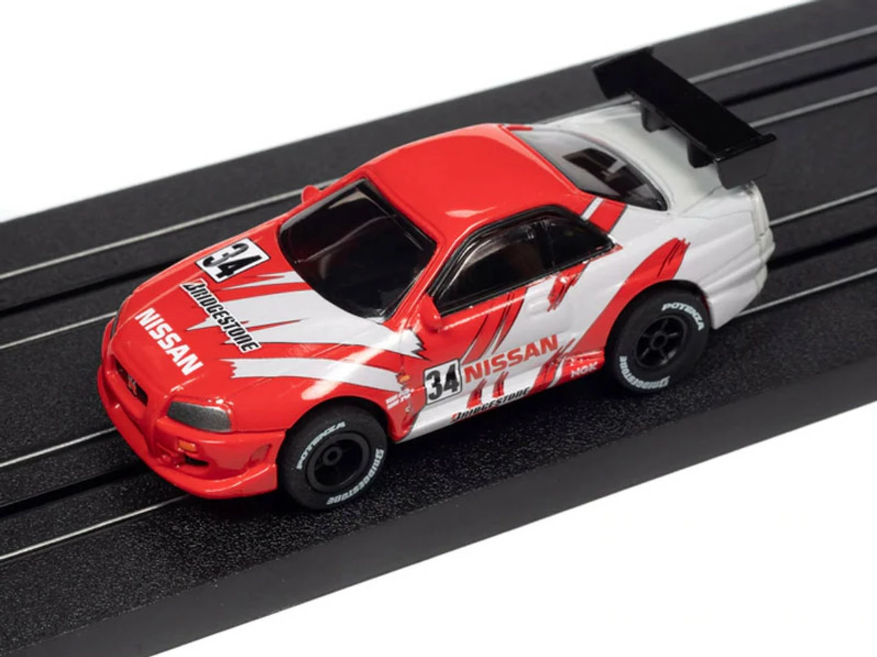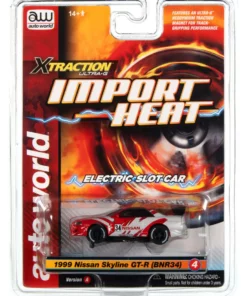This is the IMPORT HEAT Auto World 1999 Nissan Skyline GTR (Red/Gray) Import Heat X-Traction HO Slot Car