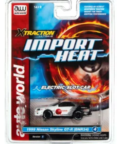 This is the IMPORT HEAT Auto World 1999 Nissan Skyline GTR (White/Black) Import Heat X-Traction HO Slot Car