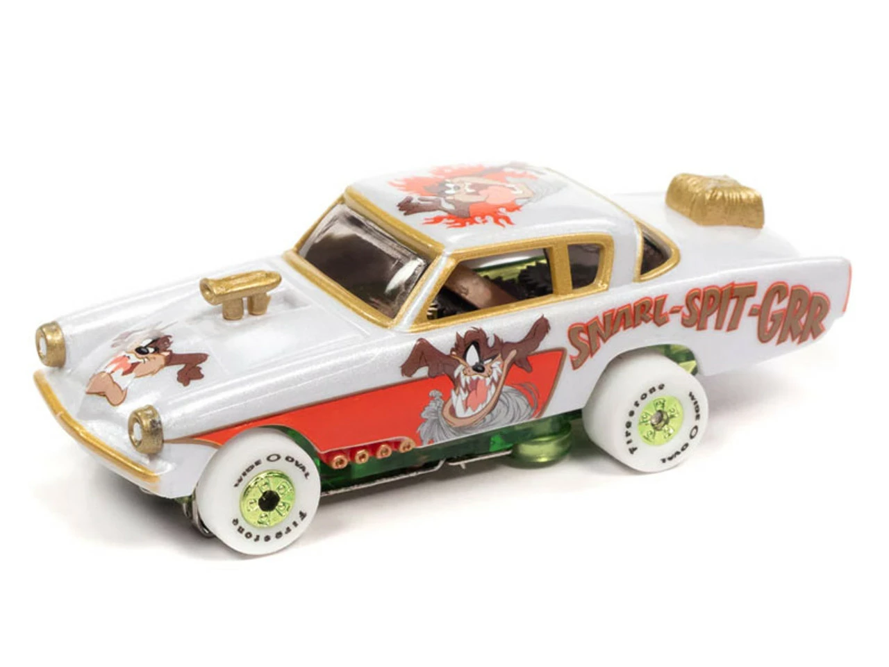 Auto World’s Looney Tunes slot cars are decked out with iconic Looney Tunes character art. The ThunderJet Ultra G chassis provides all the power these tiny toons need! Daffy Duck, Porky Pig, Speedy Gonzales and Tasmanian Devil are ready for a zaney race around the track!