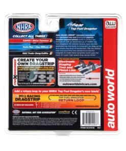 Auto World’s 4GEAR extended wheelbase and narrowed rear end fitted with gigantic dragster-inspired wheels make it perfect for Release 27 with an entire line-up of NHRA top fuel dragsters! All vehicles feature Auto World’s extended top fuel body to bring slot car racing to a whole new level of excitement. Flip the chassis over and you’ll find two neodymium traction magnets to make these dynamic racers grip the track for super high speed drag racing thrills!