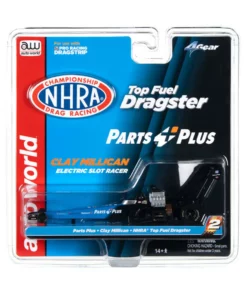 This is the Auto World NHRA Clay Millican – Parts Plus Top Fuel Dragster 4Gear HO Slot Car