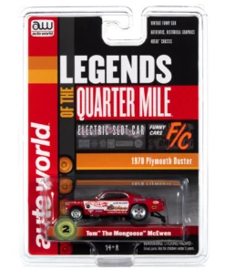 This is the Auto World Tom “The Mongoose” McEwen 1970 Plymouth Duster Funny Car 4Gear HO Scale Slot Car from Legends of the Quarter Mile Release 25.