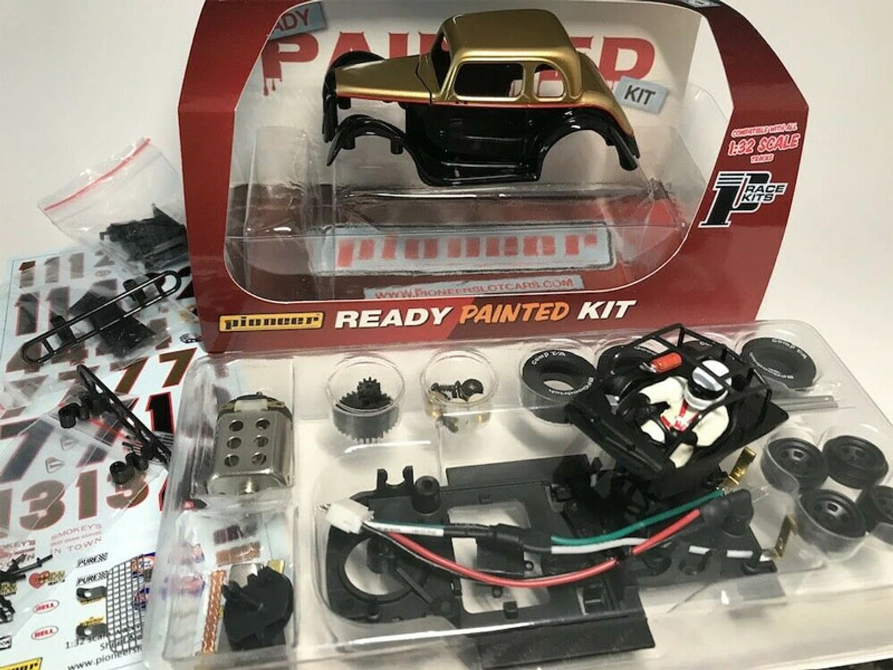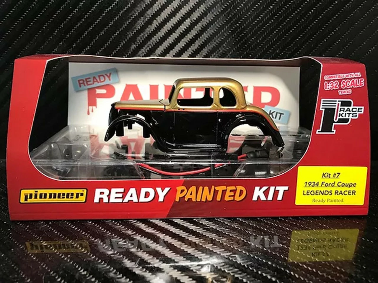This is the Pioneer (RP) 1934 Ford Coupe Legends Racer ‘Ready Painted’ Kit 1/32 Slot Car. These kits give modelers of all ages the opportunity to both customize their vehicle and learn about the mechanical workings of the cars.