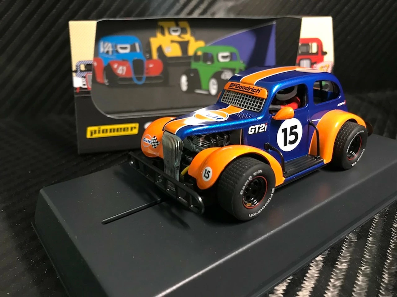 Pioneer 1937 Chevy Sedan Legends Racer #15 GULF Dark Blue 1/32 Slot Car