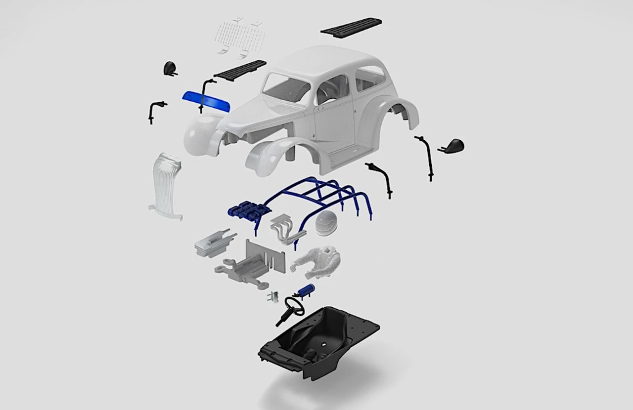 This is the Pioneer 1937 Chevy Sedan Legends Racer Paint It Yourself PIY Kit 1/32 Slot Car. These kits give modelers of all ages the opportunity to both customize their vehicle and learn about the mechanical workings of the cars.