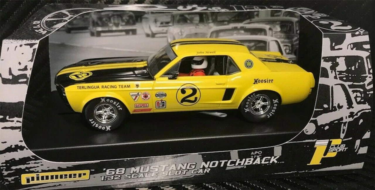 Pioneer 1968 Mustang Notchback T/A, Yellow #2 John Atwell 1/32 Slot Car