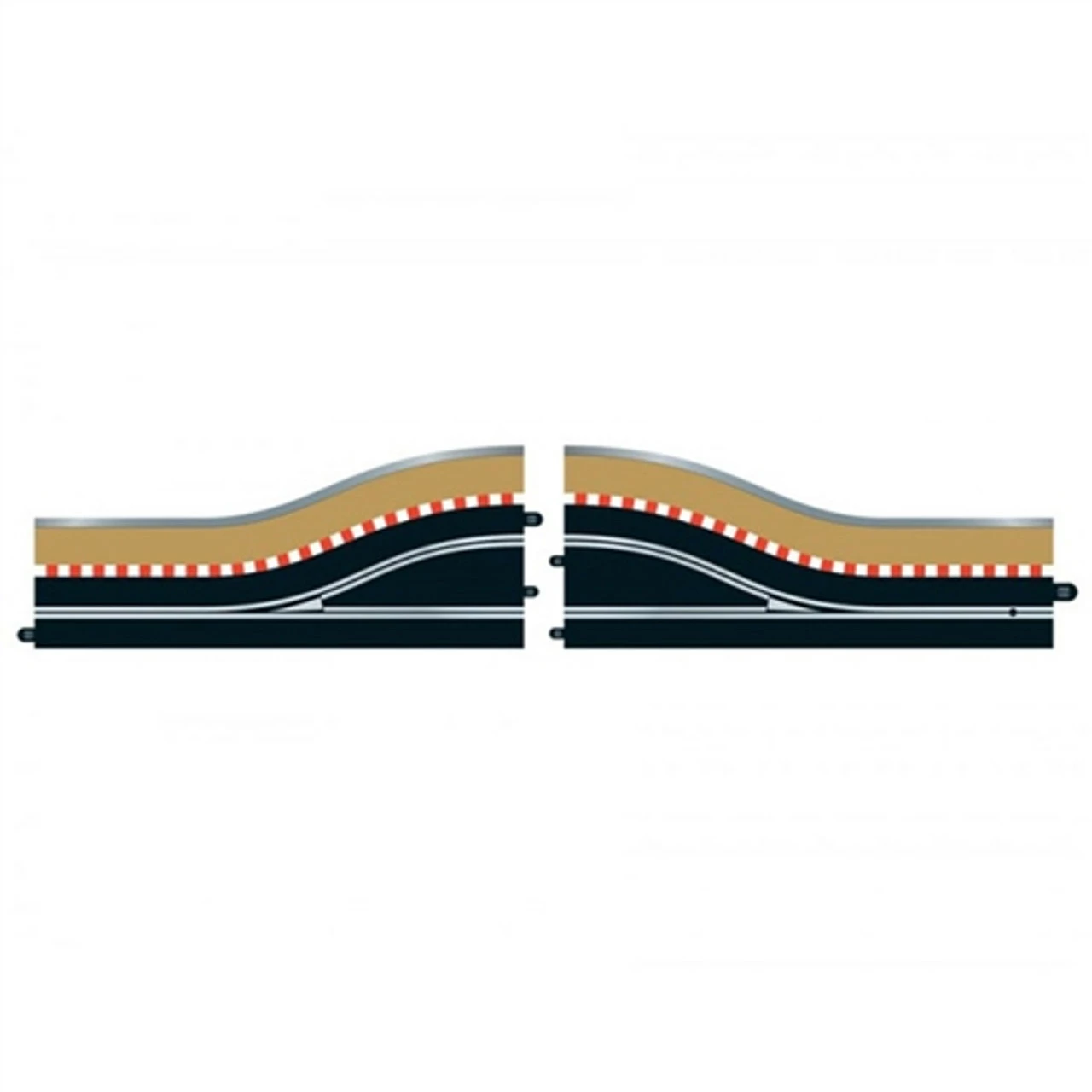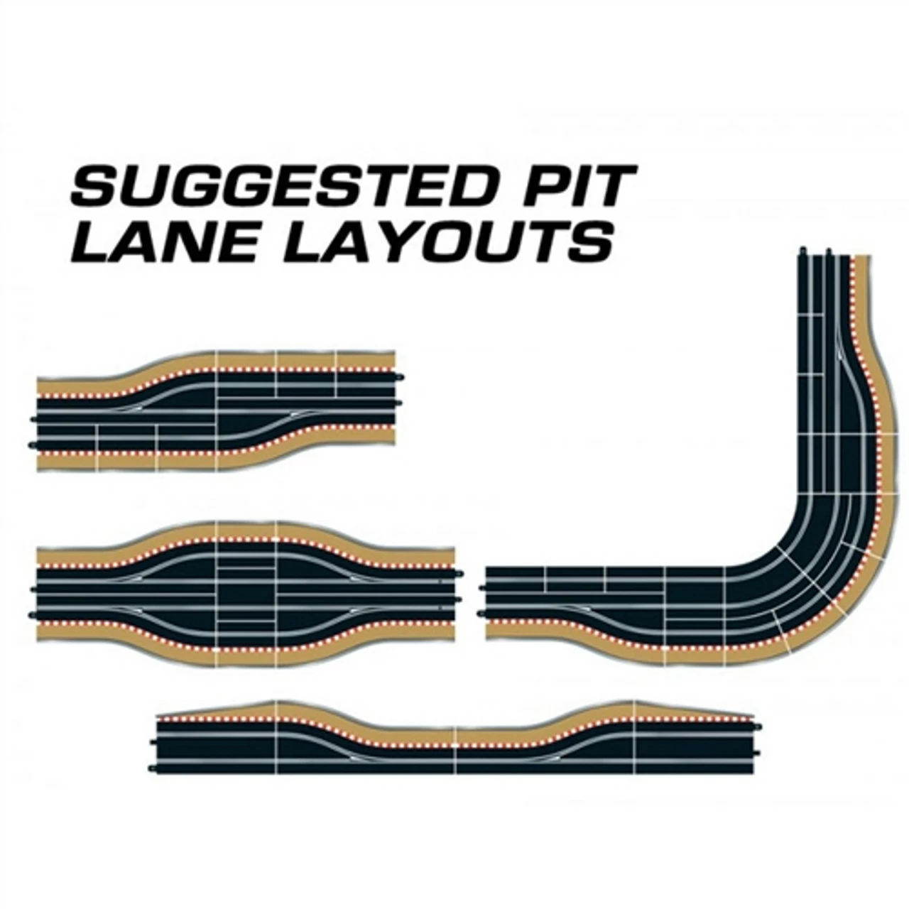 This is the Scalextric 1/32 Digital Slot Car Right-Hand Pit Lane Track Section with Sensors and Borders. This pair of Scalextric Digital pit lane track sections allows you to create pit lanes for your Digital layouts. Also allows the creation of alternative track routes, for example, a single lane rally extension track to a current layout, or converts 2 lanes into 1 lane or converts 2 lanes in to 3 lanes or more. There is no limit to the amount of additional lanes you can add.