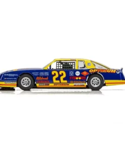 This is the Scalextric Chevrolet 1986 Monte Carlo Optimum No. 22 1/32 Analog Slot Car. The car features high detail, a super-resistant body, and is Digital Plug Ready.