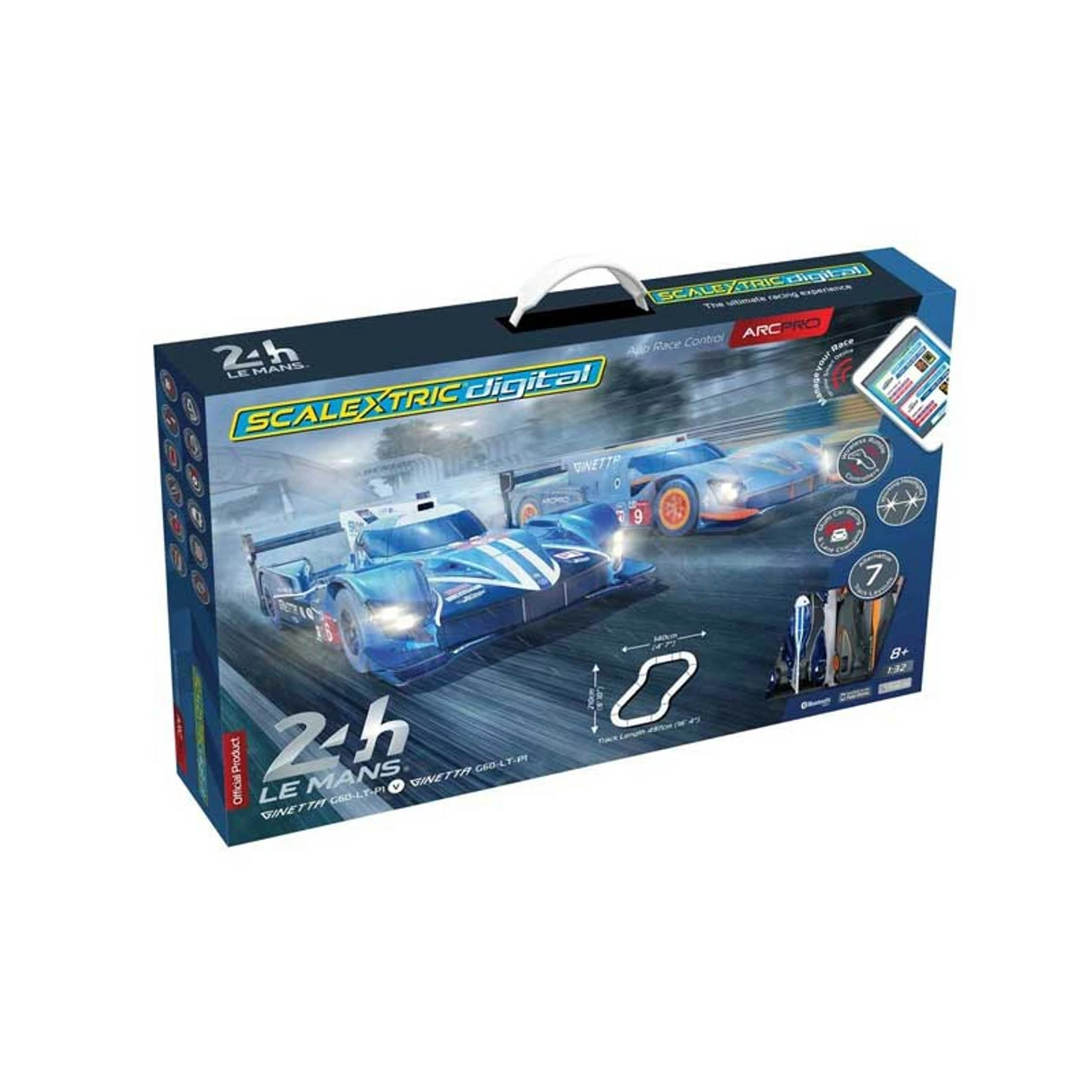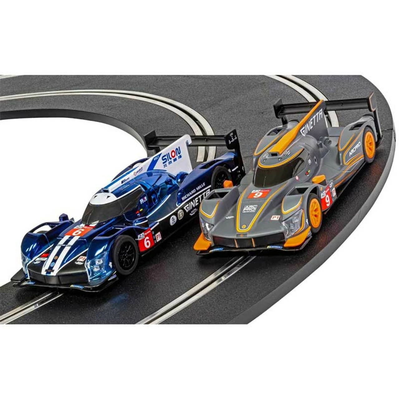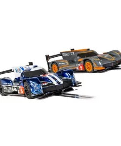 This is theScalextric ARC PRO 24h Le Mans Ginetta LMP1 Blue and Ginetta LMP1 White/Orange 1/32 Slot Car Set featuring two beautiful Gineeta LMP cars. Check out all the features below that add to the thrill and realism of racing with this set.