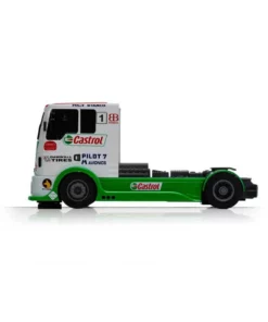 This is the Scalextric Castrol Racing Truck Super Resistant 1/32 Slot Car. The car features a Super Resistant, durable design and is Digital Plug Ready (DPR) for easy digital conversion.