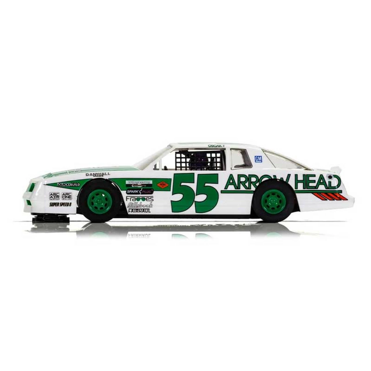 Continuing Scalextric’s successful form of 1980s stock cars this striking green and white Chevrolet Monte Carlo captures the real essence of 1980s racing. Its square lines and strong engine give it a real edge and strength around your track at home.