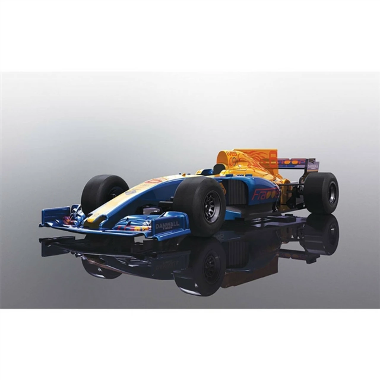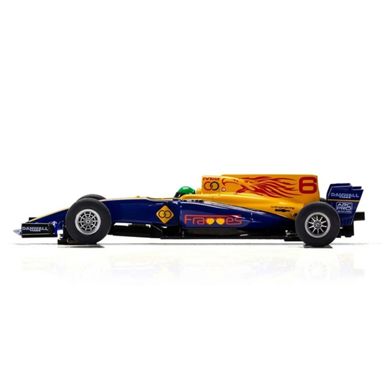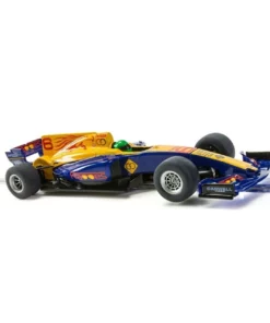 This is the Scalextric Blue Wings ‘FRAOOES’ F1 1/32 Slot Car. When the going gets tough, our great value Scalextric Super Resistant series is more than up to the challenge. The new shape for our Grand Prix single seaters are ideal fun for junior racers and will be sure to keep them coming back for more racing action. To see who wins grab the new blue single seater by the horns or will it be a one horse race with the new red single seater.