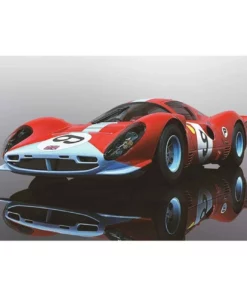 This is the Scalextric Ferrari 412P 1967 Daytona 1/32 Analog Slot Car. The Ferrari 412P was a customer version of the 330 P3 race car, which was built for independent teams. One of these teams was Maranello Concessionaires, who purchased the 412P designated 0854.