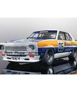 This is the Scalextric Holden Torana ATCC 1977 Peter Brock 1/32 Analog Slot Car. Peter ‘Perfect’ Brock was a true hero of Australian motorsport, as well as his iconic red and white colors his Torana raced in this striking yellow and blue scheme.