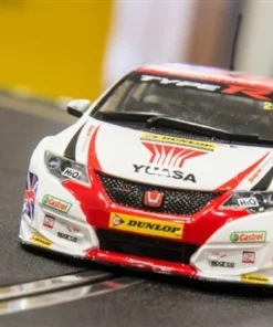 This is the Scalextric Honda Civic Type R BTCC Matt Neal Donington Park 2015 1/32 Analog Slot Car. This model is Digital Plug Ready, and also Pro Chassis Ready.