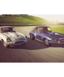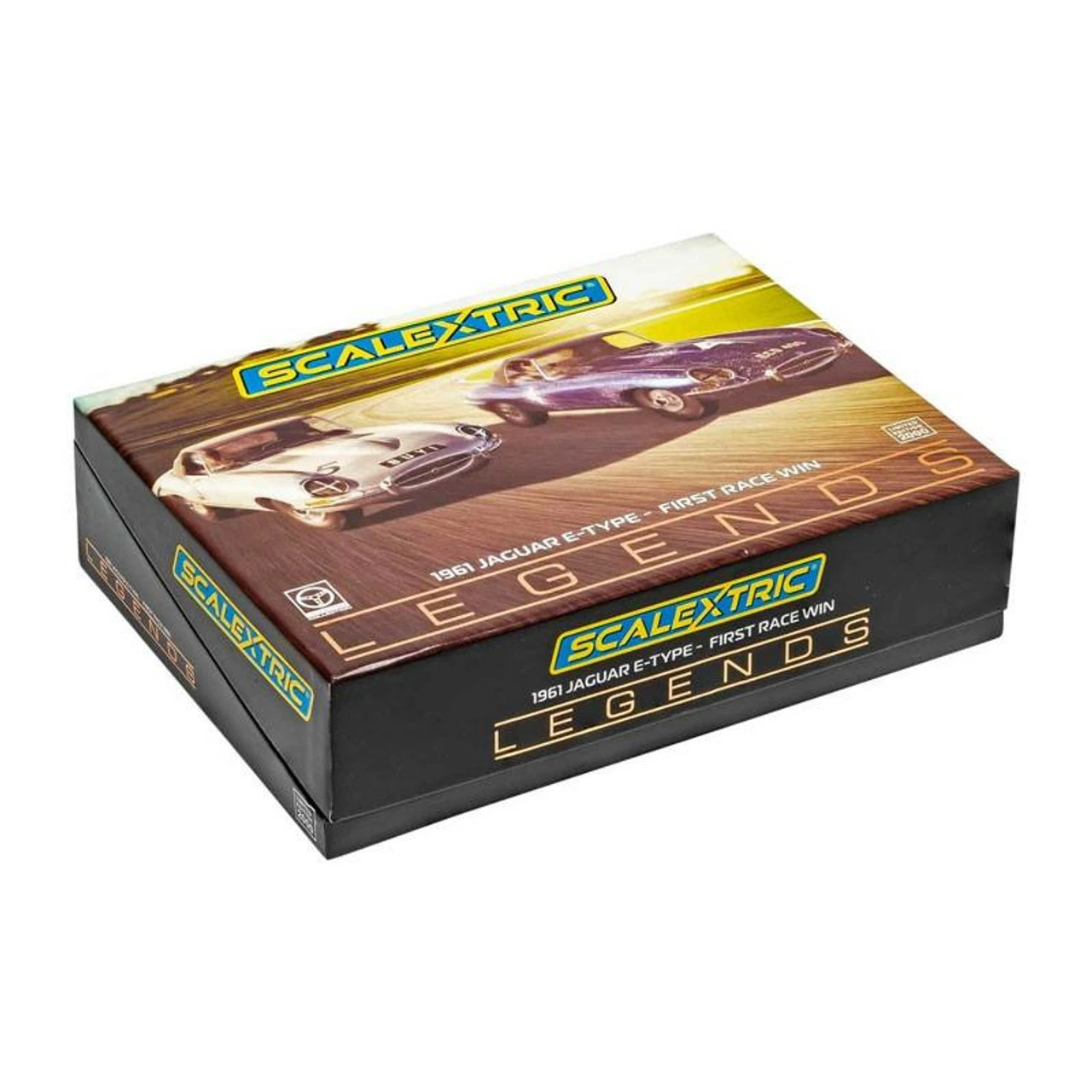 This is the Scalextric Jaguar E-Type First Win 1961 Twin Pack 1/32 Analog Slot Cars. This was the first race and the first win for the iconic Jaguar E-Type! A great performance by both famous drivers saw the racing career of the E-Type get off to a fantastic start.