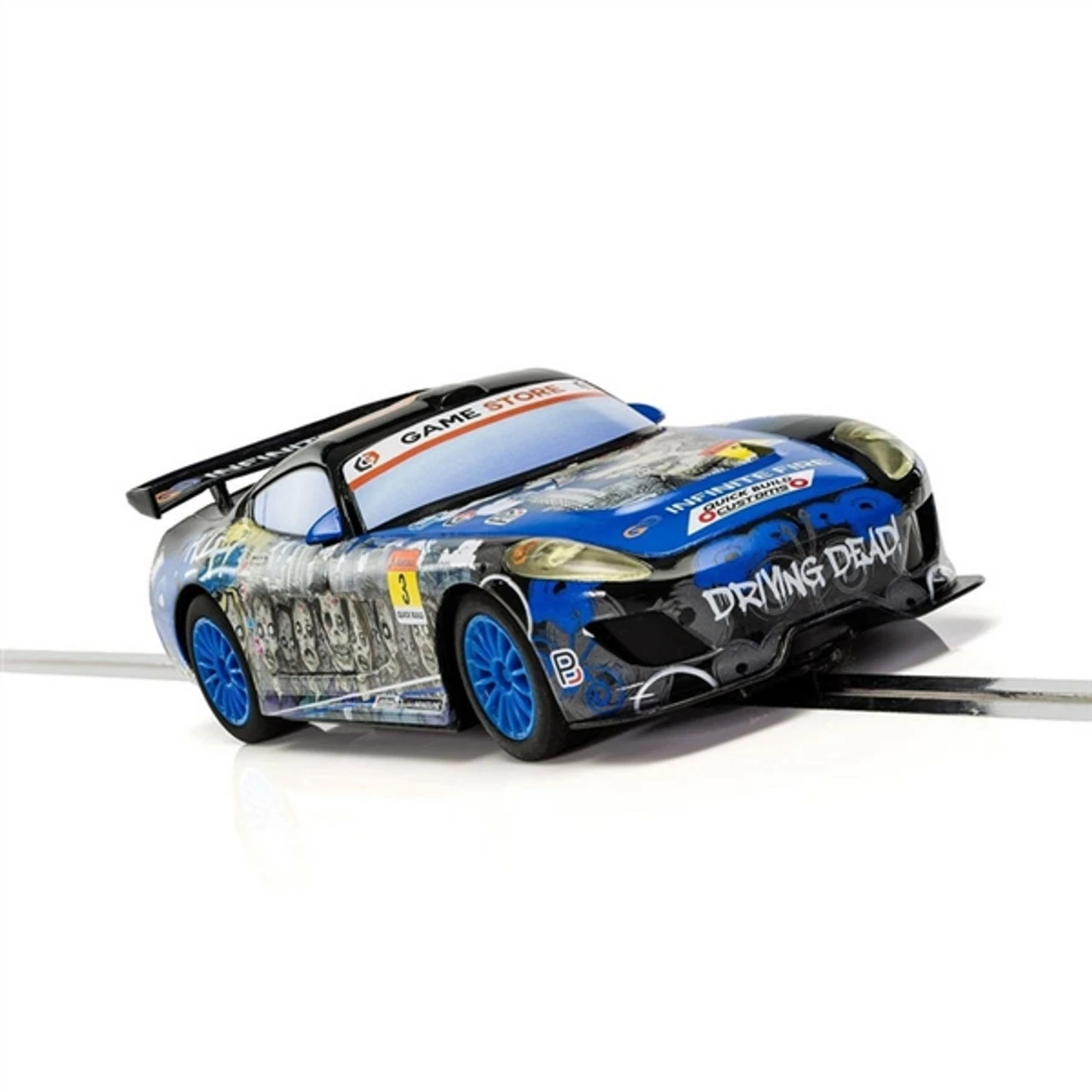 This is the Scalextric Team Zombie Anime 1/32 Analog Slot Car. This spooky livery has been uniquely created by Scalextric for racers who like their cars a little bit different. Racing with a horde of shambling zombies on your car is sure to turn a few heads wherever you race. Incredibly detailed, using the latest production techniques, this car is perfect for any slot racer who likes to race hard, and in style!